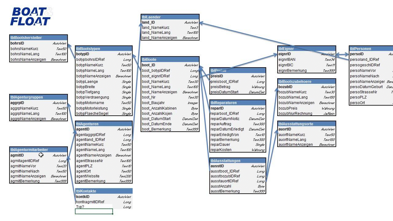 Vermittelt über die entsprechende Kombination von Schlüsseln zweier zueinander in Beziehung stehender Objektbeschreibungen werden in den zugehörigen Darstellungsformen diese intern dem Datenbestand vermittelt. Das heißt, dass die Relationships immanenter Bestandteil der Datenbasis sind. Dies grafisch zu vermitteln ist lediglich für den Database-Designer von Bedeutung damit dieser eine bessere Vorstellung des Beziehungsgefüges hat - der Datenbasis selbst ist das Wurscht! | |||||||||||||||||||||