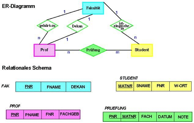 Beispiele für Entity-Relationships innerhabb einer Schule |
