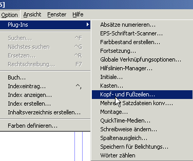 im Optionsmenü - Plug-Ins finden wir auch die Kopf- und Fußzeilen