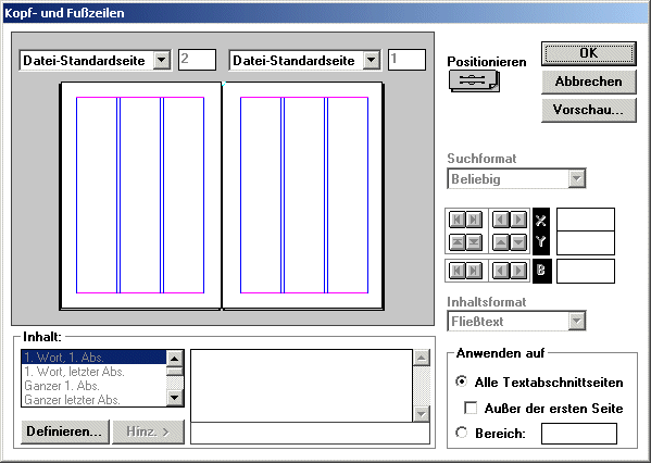 Kopf - und Fußzeilen sind auf allen (häufig ohne der ersten Seite!) wiederholte Anmerkungen, welche einen Bezug zum Textdokument zulassen.