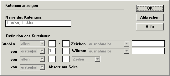 Übersicht über vorhandene Kriterien für Kopf- und Fußzeilen