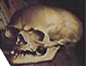 sieht, wenn man das Bild schräg von links unten betrachtet. Hans Holbein