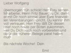 Anfangsbuchstaben des Adressaten und der Name der Firma deuteten an, dass