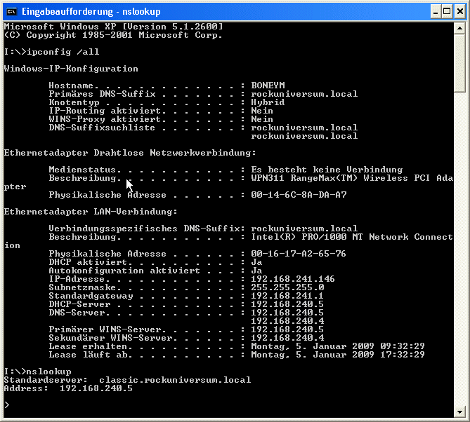 Bestimme Namen sowie IP-Adresse des Domain-Nameservers im Schulnetzwerk! |