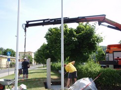 | ... der 20.6.08 brachte vor allem Fortschritte auf dem Gebiet der Baustatik - das Schulschild bekommt seine Grundform: | |||