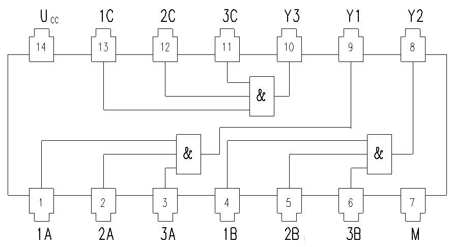 Pin-Belegung des 14-poligen DIL's 7461, 74LS61, DL061, 74HCT61