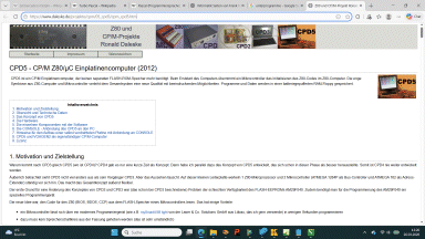 Der CPD5 von Ronald Daleske ist ein CP/M Einplatinencomputer, der keinen separaten FLASH-ROM-Speicher mehr benötigt. Beim Erststart des Computers übernimmt ein Mikrocontroller das Initialisieren des Z80-Codes im Z80-Computer. Die enge Symbiose aus Z80-Computer und Mikrocontroller verleiht dem Gesamtsystem eine neue Qualität mit beeindruckenden Möglichkeiten. Programme und Daten werden in einer batteriegepufferten RAM-Floppy gespeichert. |