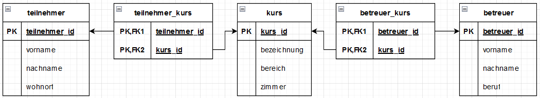 Erstellen Sie mit Hilfe der Internetseite https://app.diagrams.net zu den oben genannten Informationen ein geeignetes Entity-Relationship-Diagramm