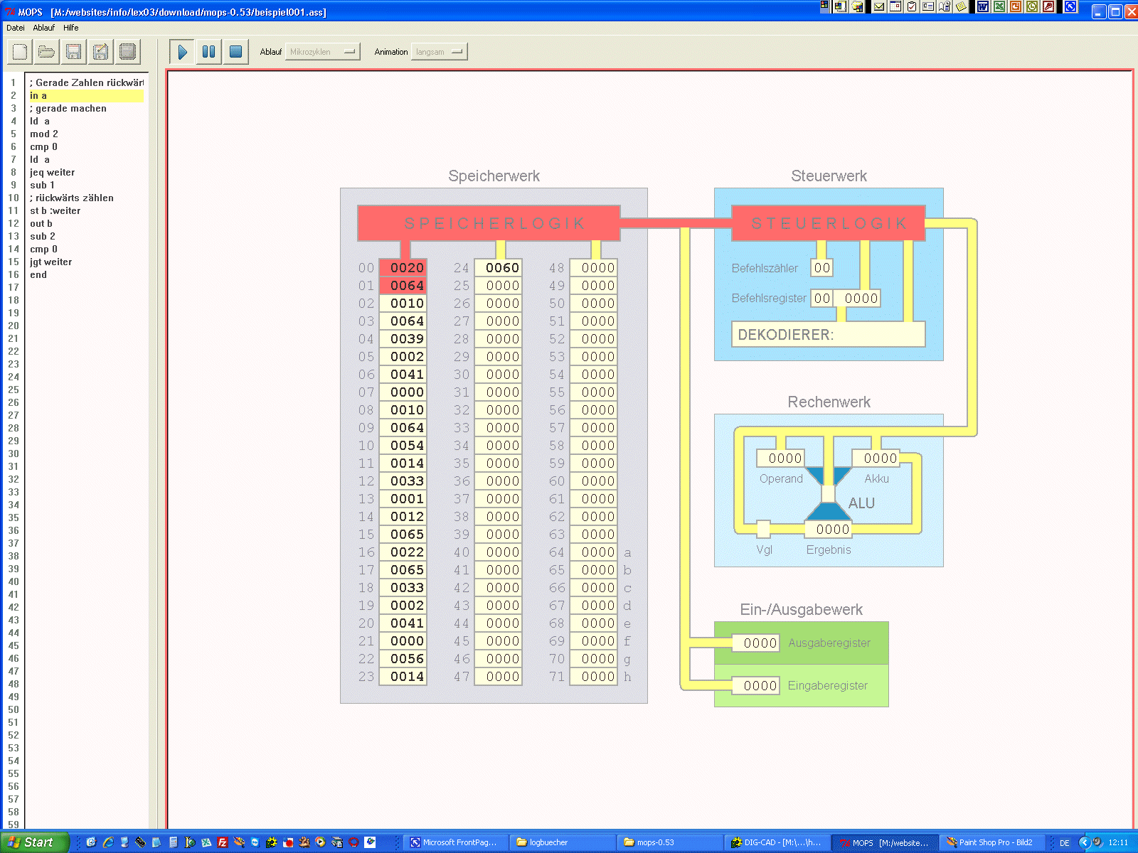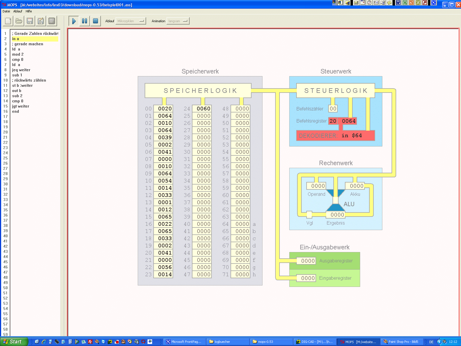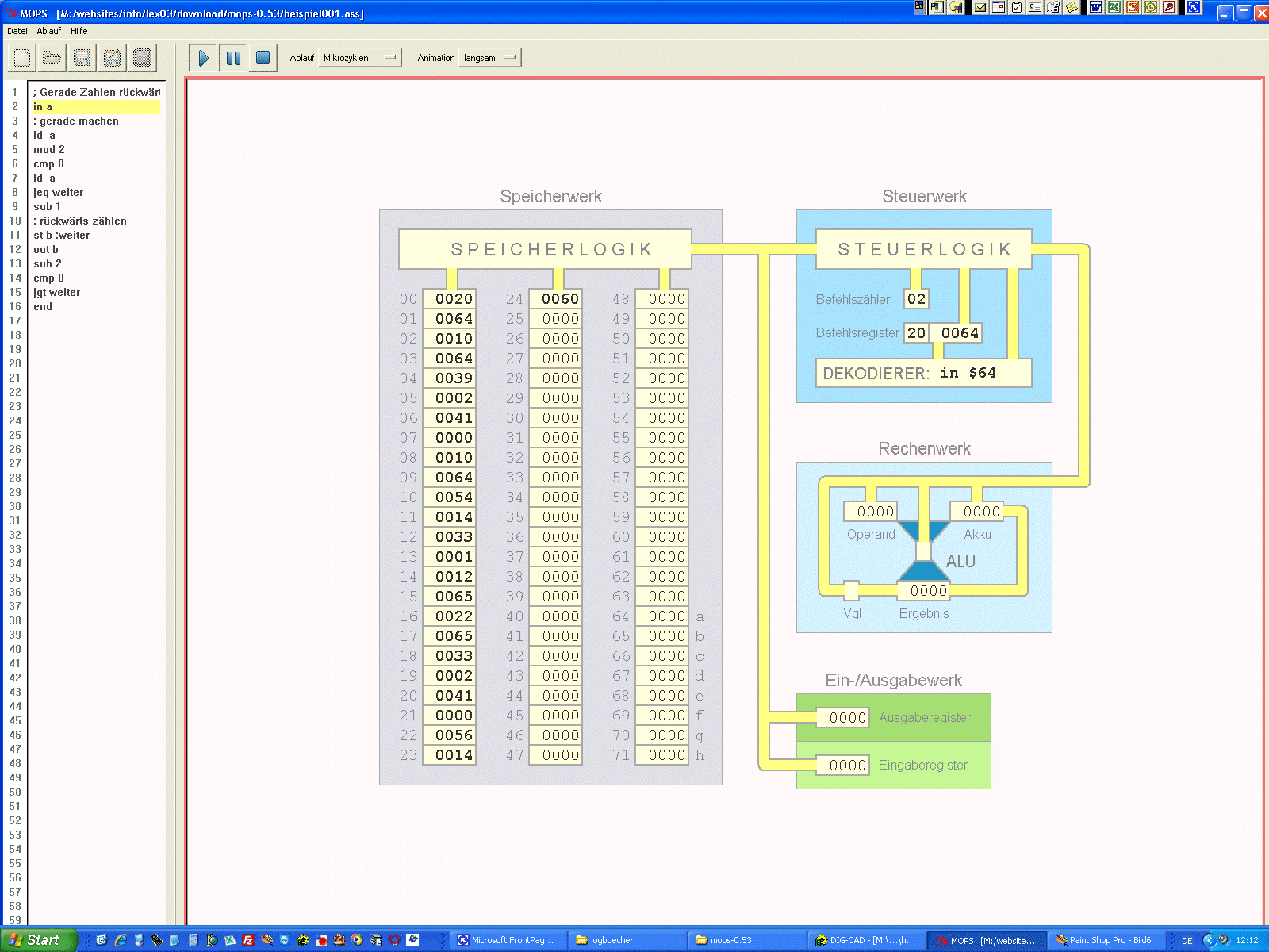 MOPS - der MOdellrechner mit PSeudo-Assembler |
