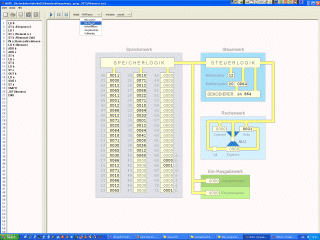 Der MOPS ist ein Modellrechner nach der von-Neumann-Architektur. Im Befehlsvorrat sowie der Registerzahl absolut vereinfacht ist er ausgezeichnet geeignet, auch schon komplexe interne Vorgänge wirklichkeitsnah abzubilden. Funktionalität, Speichergröße sowie Registeranzahl sind bewusst startk vereinfacht. | ||||||