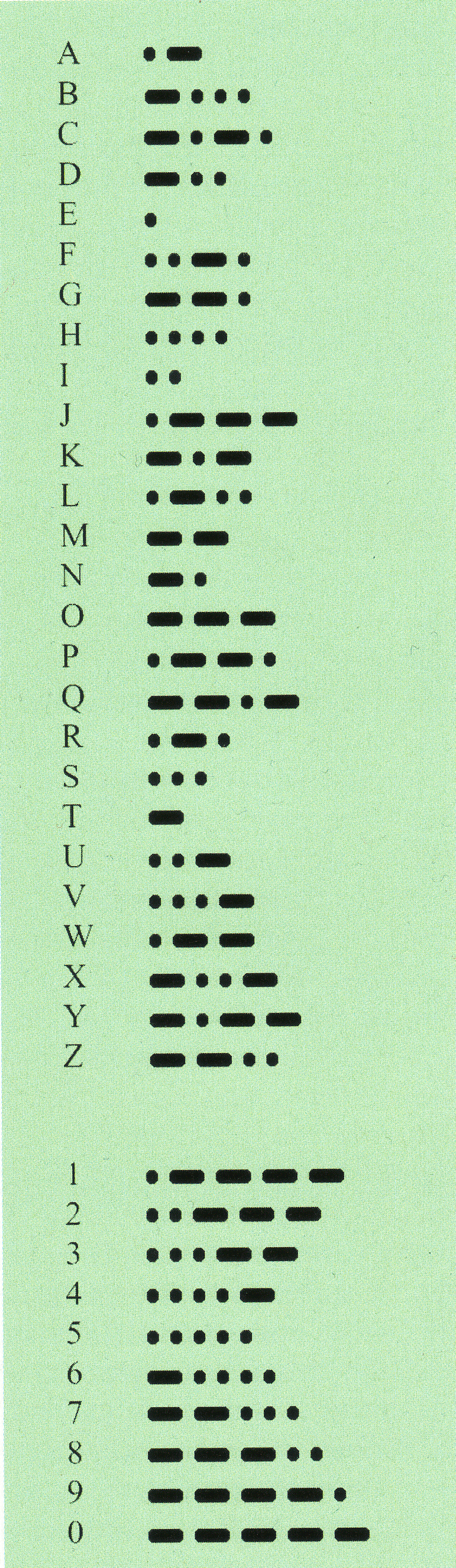 abgelöst. Es sind die Funkamateure, die heute noch die Erinnerung an eine Technik wachhalten, die beginnt, ein Teil der Geschichte zu sein, auch wenn bekanntlich die Beherrschung von Morsezeichen seit Juli 2003 nicht mehr zum Prüfungsumfang für Funkamateure gehört. Dennoch geben sich nach wie vor beispielsweise unsere Amateurfunk-Relaisfunkstellen in aller Regel mittels Morsezeichen zu erkennen, ebenso wie Bakenstationen. In der Luftfahrt senden heute noch VORS und NDBs, also Funkfeuer, ihre Kennung in Morsezeichen aus. Da das Morsealphabet nicht zum Ausbildungsspektrum heutiger Piloten gehört, sind die Kennungen auf Luftfahrtkarten mit Punkten und Strichen verzeichnet. In der Seefahrt arbeiten Radarantwortbaken mit einem Echo, dem ihre Kennung in Morsezeichen aufmoduliert ist. |