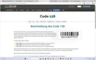 Code-128-Symbols besteht aus einem Startzeichen, der Nutzinformation, der