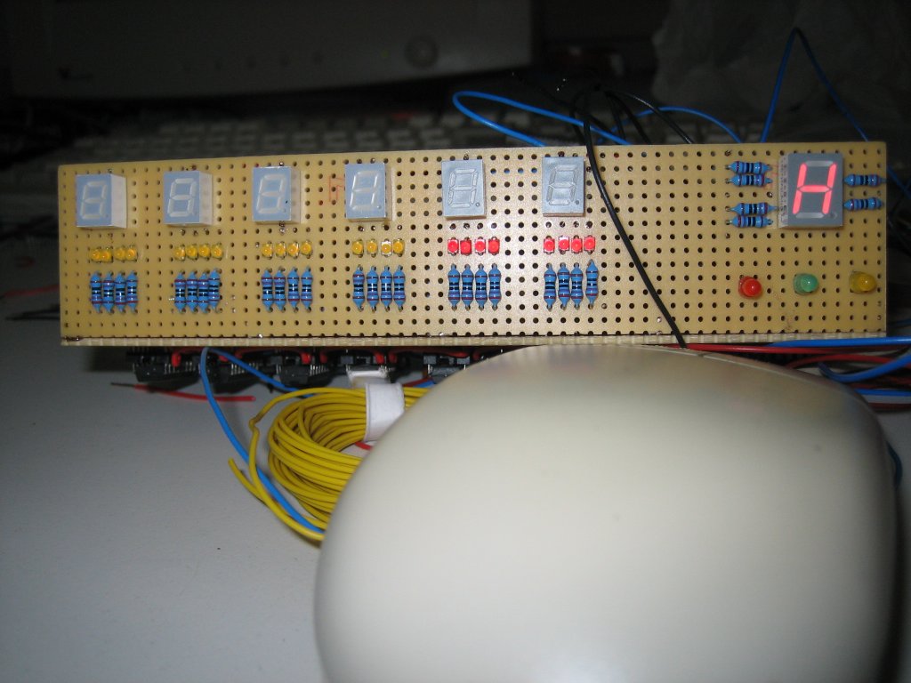 beginnend. Anzeige Die Ausgabe der Informationen erfolgt hexadezimal durch eine sechsstellige Siebensegmentanzeige mit drei VQE23. Davon dienen vier Stellen der Anzeige der Adresseninformation und zwei Stellen der Anzeige des Speicherinhaltes. Darüber hinaus können beliebige Informationen (Meßwerte, Zeiten bzw. eingeschränkt alphanumerische Daten) im Siebensegmentkode dargestellt werden. Anmerkung: bei Einsatz anderer Typen ist lediglich auf evtl. geänderte Stromwerte zu achten - auf jeden Fall müssen Anzeigen mit gemeinsamer Katode eingesetzt werden.