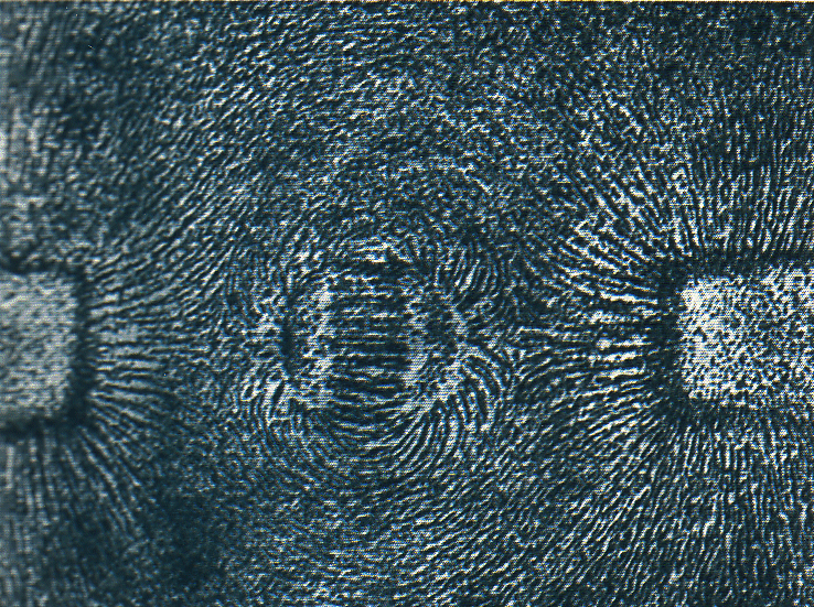 Mit Eisenfeilspänen machte Faraday die magnetischen Kraftlinien sichtbar. Die Späne richteten sich nach den Kraftfeldern eines Magneten aus |