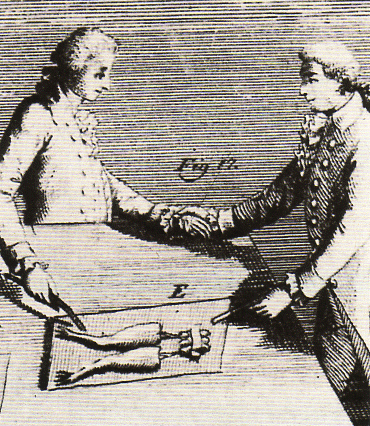 Galvani hatte bei seinen anatomischen Untersuchungen entdeckt, dass die Muskeln sezierter Tiere Reflexe zeigten, die auf elektrische Kräfte hinwiesen. Besonders deutlich war diese »thierische Elektrizität« an Froschschenkeln zu beobachten. Sie vollführten wilde Zuckungen, wenn man sie mit dem Seziermesser berührte und gleichzeitig eine Elektrisiermaschine, die keine direkte Verbindung zum Seziertisch hatte, Funken erzeugte. Bei einem weiteren Experiment hatte Galvani die Froschschenkel an