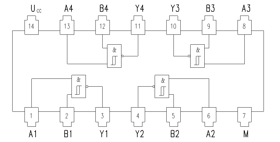 Vier mal Zwei-Eingangs-Schmitt-Trigger-NAND