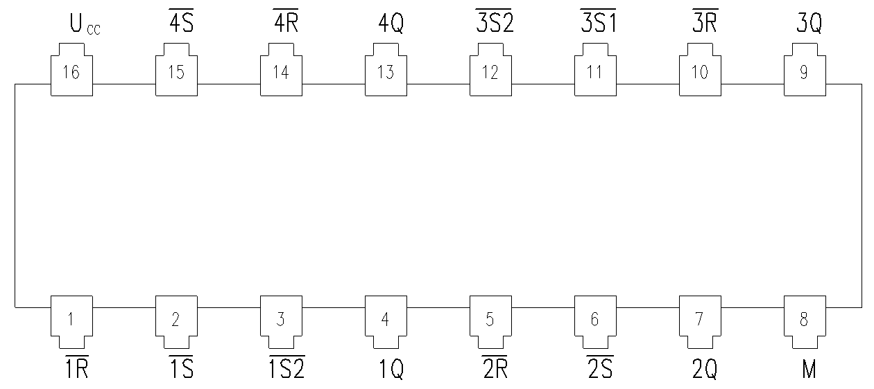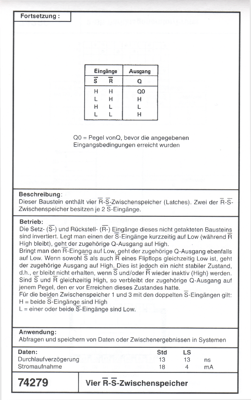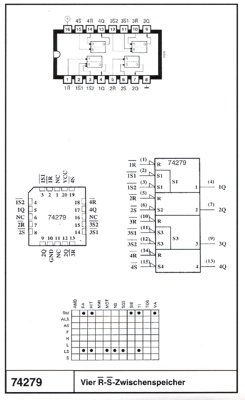 Pin-Belegung des 14-poligen DIL's 74279, 74LS279, DL279, 74HCT279