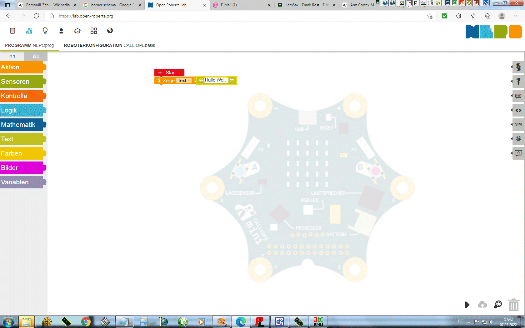 Die CALLIOPE-Programmierumgebung Open Roberta