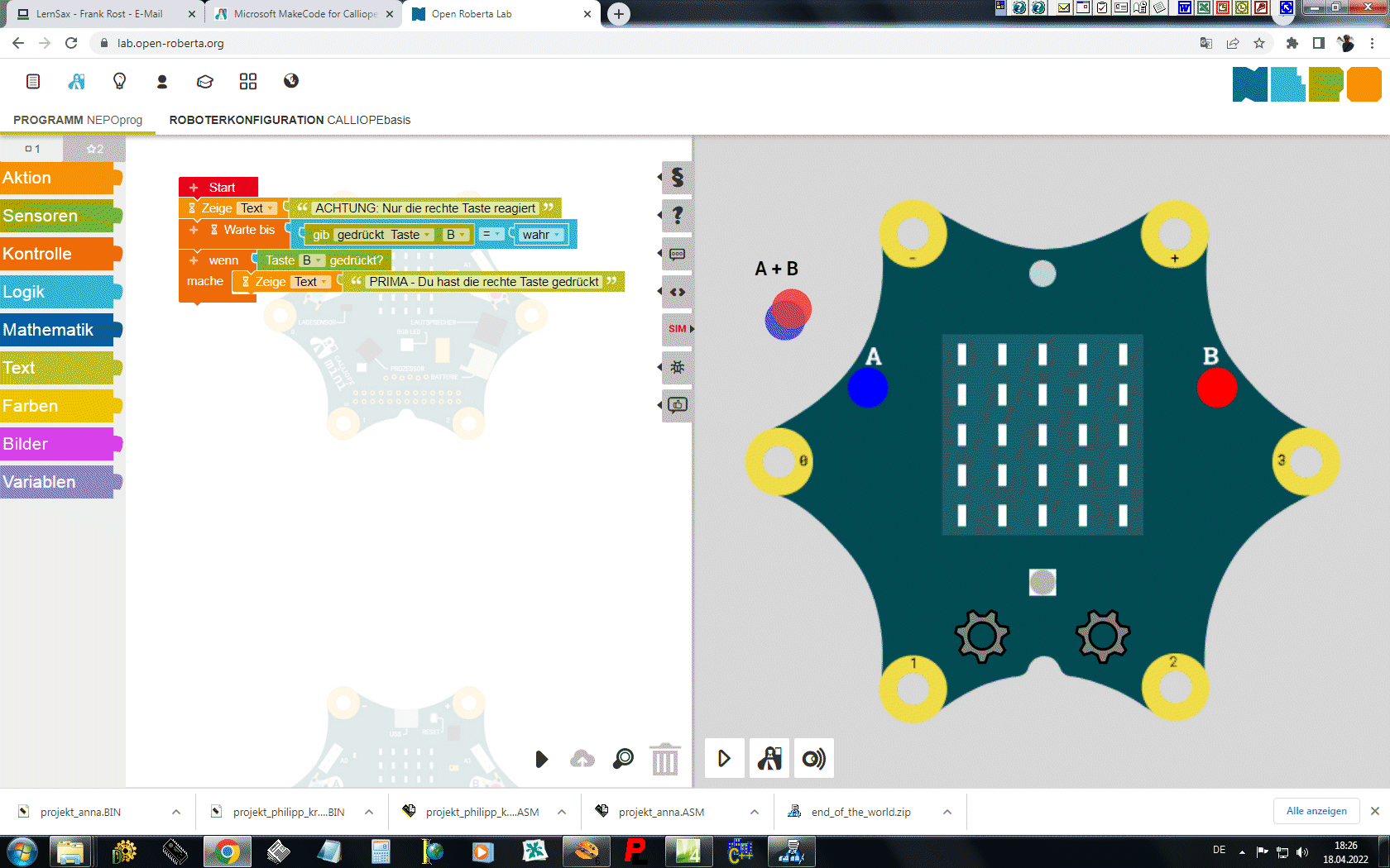 funktioniert schon ganz gut - nur wenn ich beide Tasten drücke, wird auch reagiert