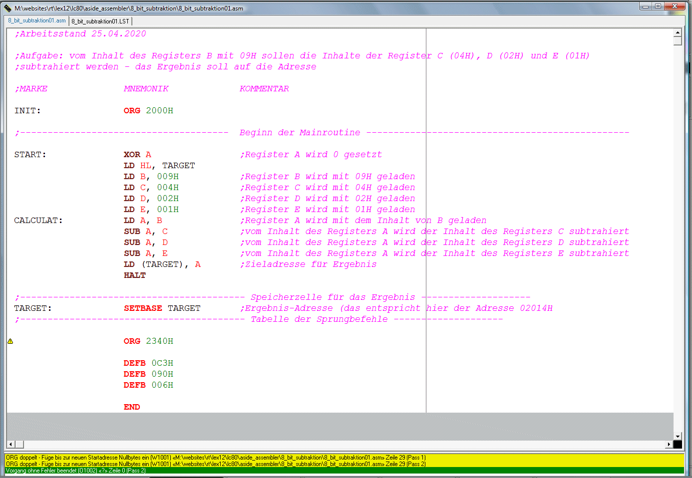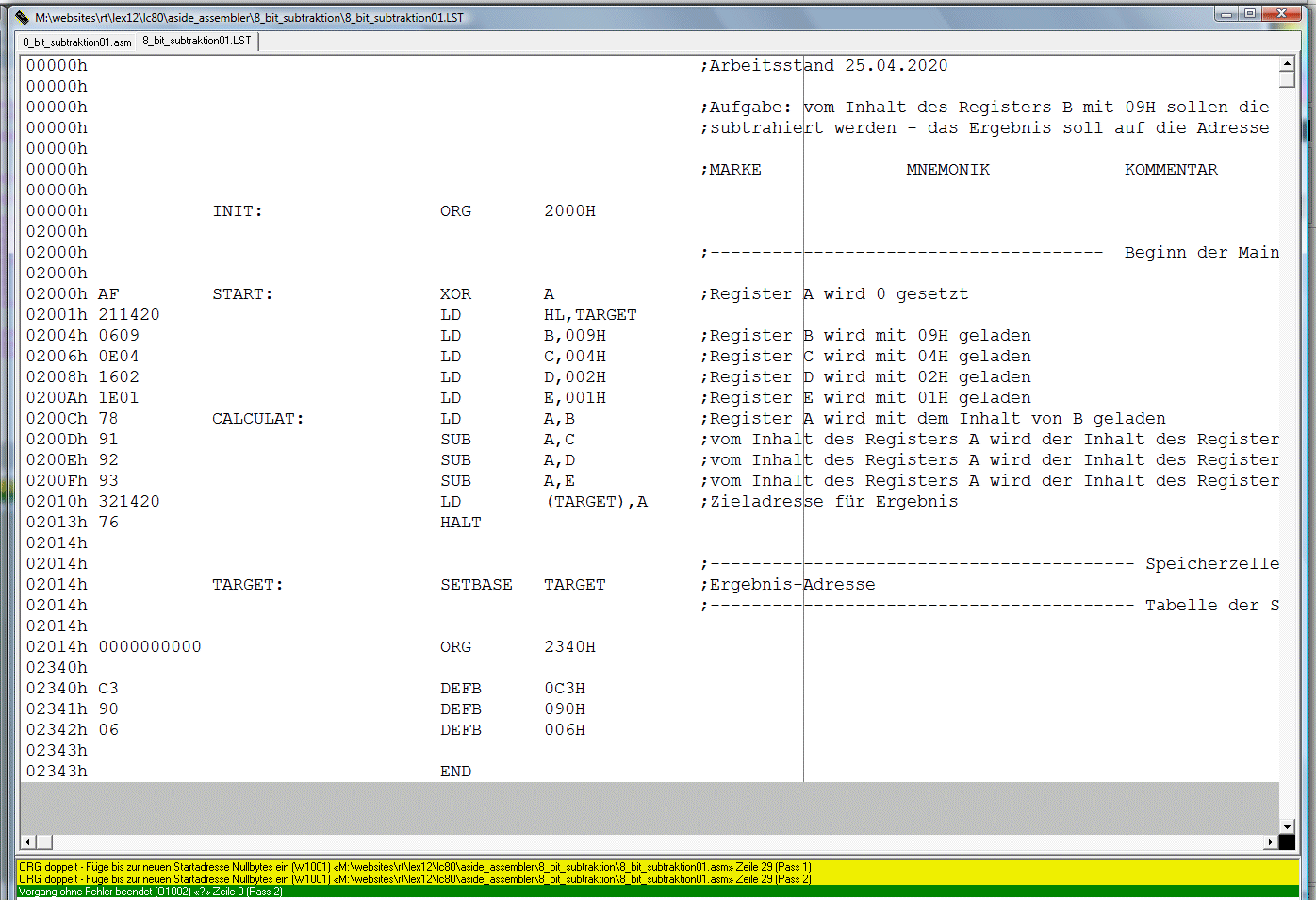 Aufgabe: ... ein genau definiertes Bezugsregister (nicht A) enthält den Minuenden - weitere 3 Register enthalten Subtrahenden - es gibt eine Target-Adresse für die Differenz!