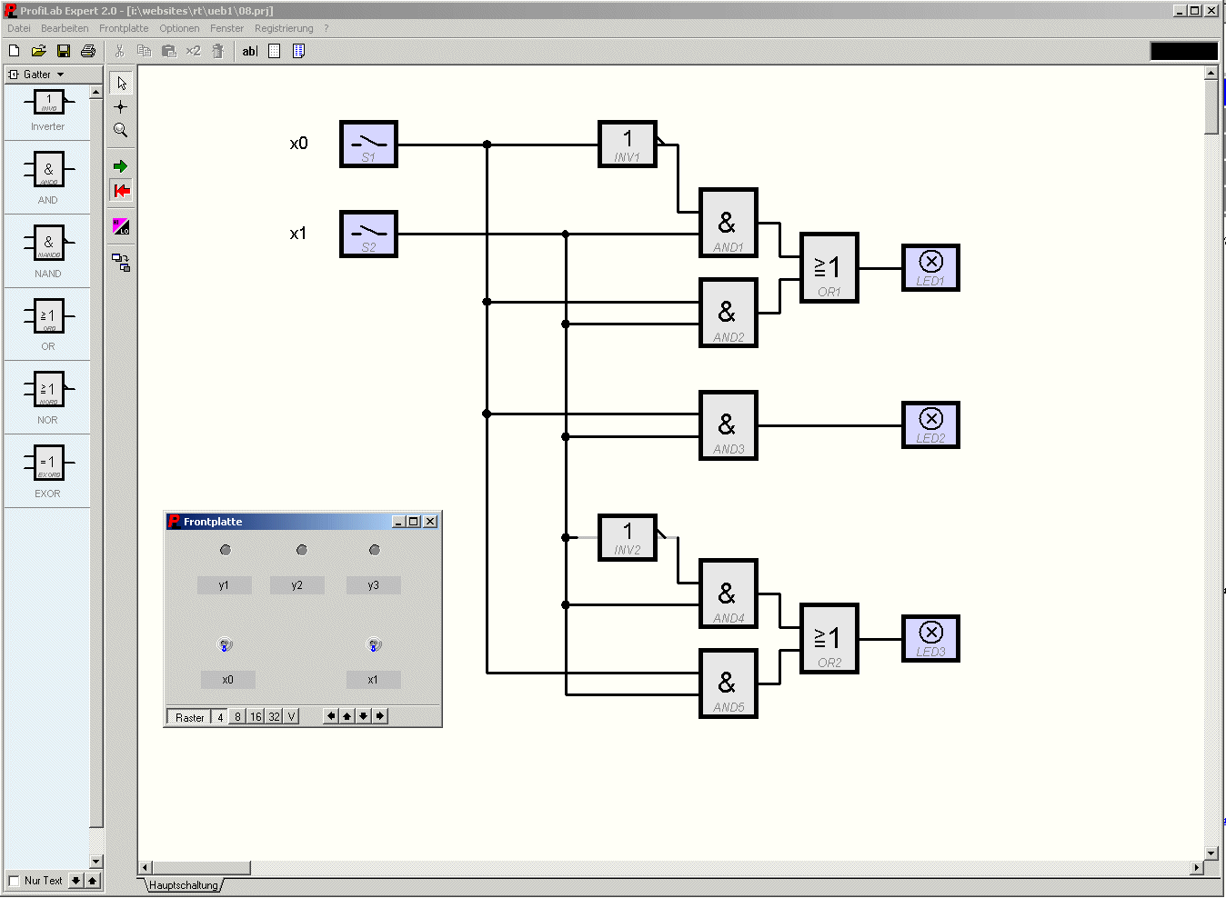 Entwickeln Sie eine Schaltlogik mit logischen Grundfunktionen (AND, OR, NEGATOR, NAND, NOR, Äquivalenz und Antivalenz - andere Logiken sind keine Grundschaltungen!!!)