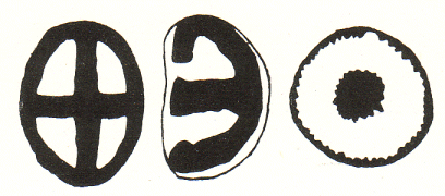 Abbildung 4: Mit Merkzeichen bemalte Kiesel aus südfranzösischen Höhlen |